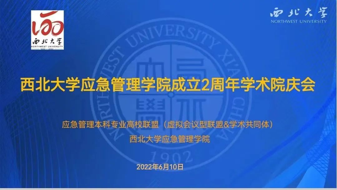 2022年6月10日上午,西北大学应急管理学院成立2周年院庆会暨应急管理学科建设交叉与融合学术研讨会在西北大学长安校区西学楼1304会议室召开。本次会议由应急管理本科高校联盟(虚拟会议型联盟&学术共同体)、西北大学应急管理学院主办,以“应急管理学科建设:交叉与融合”为主题,旨在推动应急管理专业高质量发展,促进应急管理学科交叉与发展。来自线上线下近100多名嘉宾参加了本次会议。会议由西北大学应急管理学院副院长李尧远教授主持。