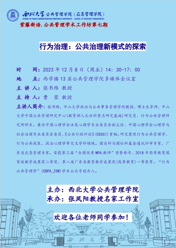会议预告|紫藤新语•公共管理学术工作坊第七期——行为治理:公共治理新模式的探索