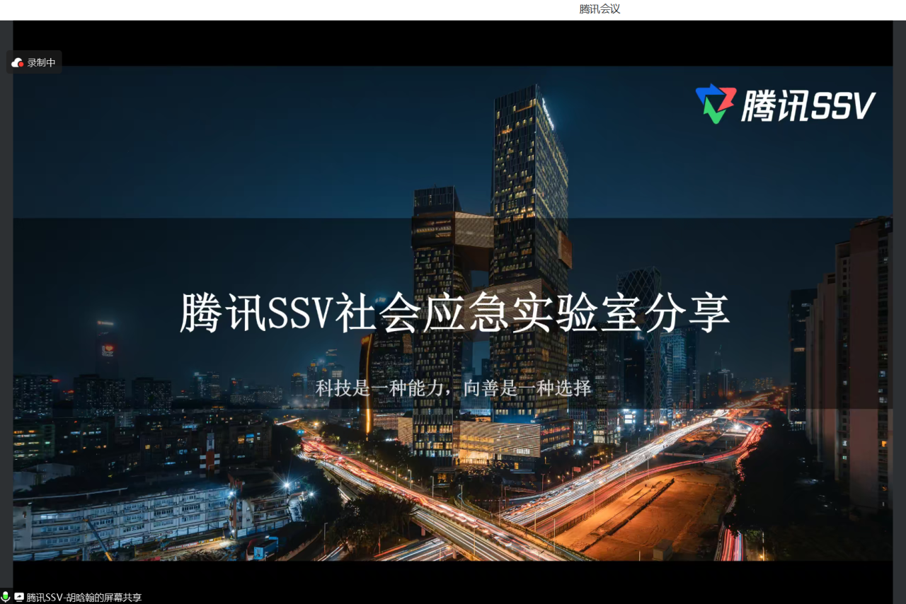腾讯SSV社会应急实验室副总经理胡晗翰作了题为《腾讯SSV社会应急实验室分享》的报告。腾讯SSV作为落实“用户为本,科技向善”这一使命的关键力量,始终聚焦民生与发展相关的社会痛点议题,从10个社会领域出发,与多方共创探索可持续解决方案,助力社会价值和经济效益的融合发展。他聚焦社会急救和灾害应急两大场景,着重介绍了SSV当前的社会应急业务,现已构建了日常社会应急网络(C2C)和探索灾害下高效的公共应急模式(C2B,C2G),链接全产业可联动业务,探索可行高效公共应急模式。例如,“5分钟社会救援圈”助力实现了事发现场、社区医院、小区物业、志愿者等一线救援力量的有效协同,打造四位一体社会急救体系;促进校园应急能力建设,现已合作40+高校;加强微信地震预警、腾讯文档等灾害应急救助平台的推广和应用等等。